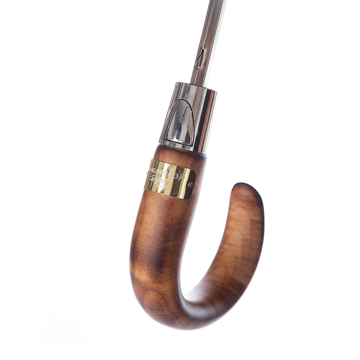 A classic folding umbrella, with automatic opening. Comes with matching case, ideal for travel. Cut & finished by hand in England using Italian fabric and maple wood handle.